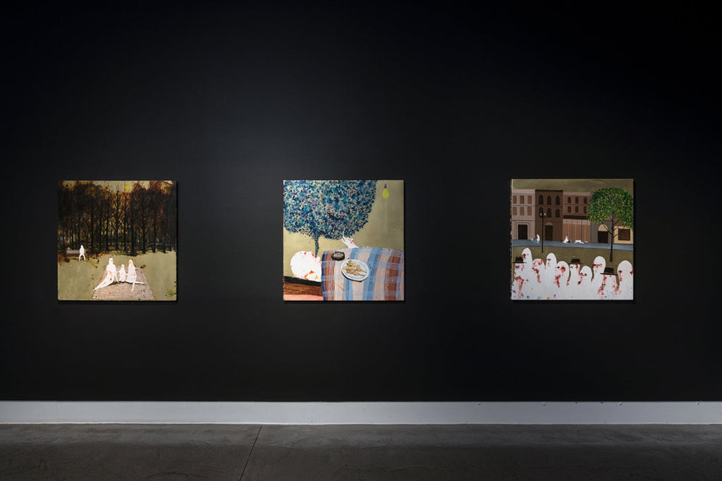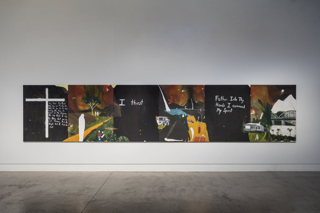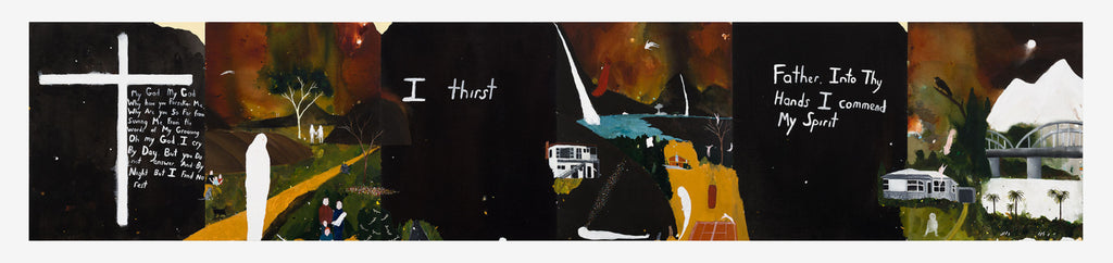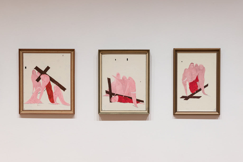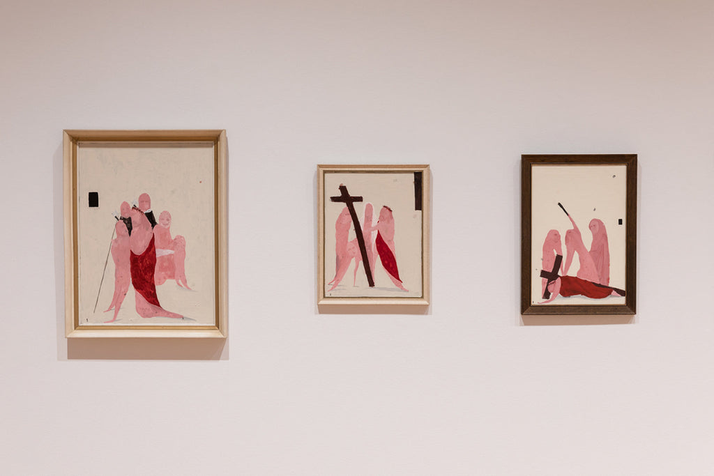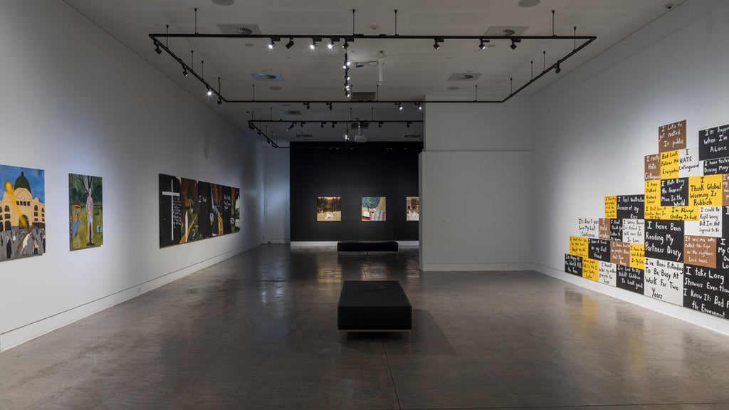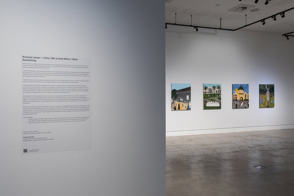 'I Only Talk to God When I Want Something' brings together key series that reflect Lewer’s lived experience of Catholicism and the rituals and moral framework that underpin it. From Confessions (2024) comprising 106 painted panels created through a participatory project whereby Lewer heard and then painted the personal confessions of gallery visitors, and Seven Deadly Sins (2023) interpreting the age-old sins of sloth, wrath, greed, envy, gluttony, pride, and lust through iconic art historical images (by artists such as Francisco Goya, Edouard Manet, Jan van Eyck, and John Brack), to Stations of the Cross (2007-08) recording the fourteen stages of Jesus’s crucifixion, the exhibition reveals Lewer’s connection to and interpretation of the faith system under which he was raised.